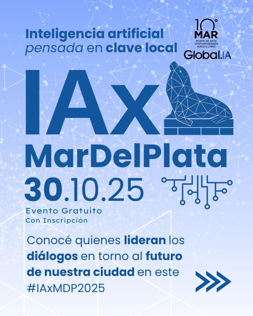 A lo largo de la jornada se desarrollarán cuatro bloques temáticos —IAxSociedad, IAxEducación, IAxSalud e IAxArte&Cultura— que abordarán las distintas dimensiones del impacto de la inteligencia artificial en nuestra vida cotidiana. En particular, Vercelli estará participando del bloque de educación a las 14 horas aprox (Cápsula 2). La participación es gratuita, con inscripción previa.