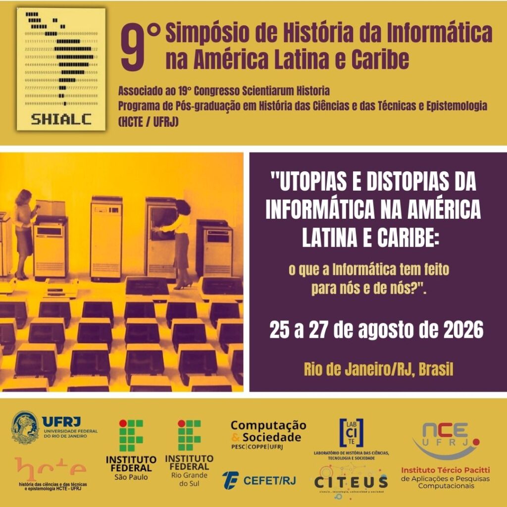 Tenemos el placer de invitarlas/os a enviar contribuciones al IX Simposio de Historia de la Informática en América Latina y el Caribe (IX SHIALC). En esta ocasión, el SHIALC volverá a realizarse en conjunto con el Congreso Scientiarum Historia, evento organizado por el Programa de Posgrado en Historia de las Ciencias y de las Técnicas y Epistemología de la Universidad Federal de Río de Janeiro (HCTE/UFRJ), que tendrá su 19ª edición entre los días 25 y 27 de agosto de 2026, en la ciudad de Río de Janeiro/RJ, Brasil. El IX SHIALC tendrá como tema principal “Utopías y distopías de la informática en América Latina y Caribe: ¿qué ha hecho la informática por nosotras/os y de nosotras/os?”