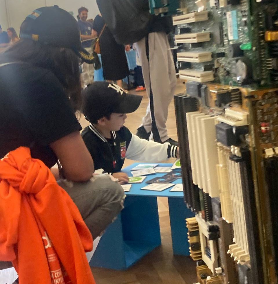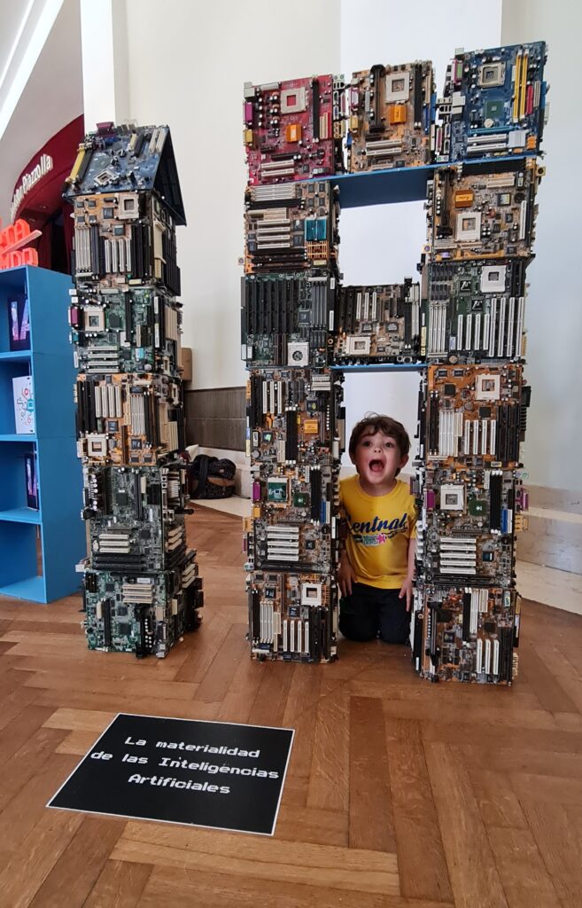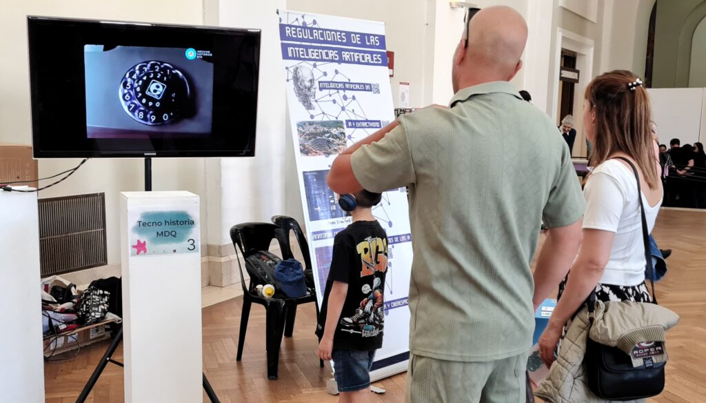 Bienvenidas y bienvenidos a la página de la instalación Tecno-Historia MDQ 2025, presentada el 1 de noviembre de 2025 en el foyed del Teatro Auditorium de la ciudad de Mar del Plata, dentro del 2do Encuentro con Nuestra Ciencia (organizado por CONICET y la UNMdP). La instalación completa fue ensamblada con unas letras “IA” de placas madre (1.80 mt de alto, 1 metro largo x 50 cm de ancho), más cubos de madera con una ta-te-ti (1,70 de alto x 1 metro de largo por 20 cm de ancho) y una pequeña mesa con memotec para las niñeces (50 x 50 y 30 cm de alto). A su vez, sumamos un afiche (2 m de alto por 80cm de ancho) para descargar breves audios a través QR y una TV de 46 pulgadas con auriculares inalámbricos donde pasamos en loop pequeños audiovisuales históricos (2/3 minutos) con relatos históricos sobre las historias de la informática. Abajo les compartimos toda la información de Tecno-Historia MDQ 2025 y las imágenes del extraordinario día de ciencia y tecnología marpla en el que participamos.